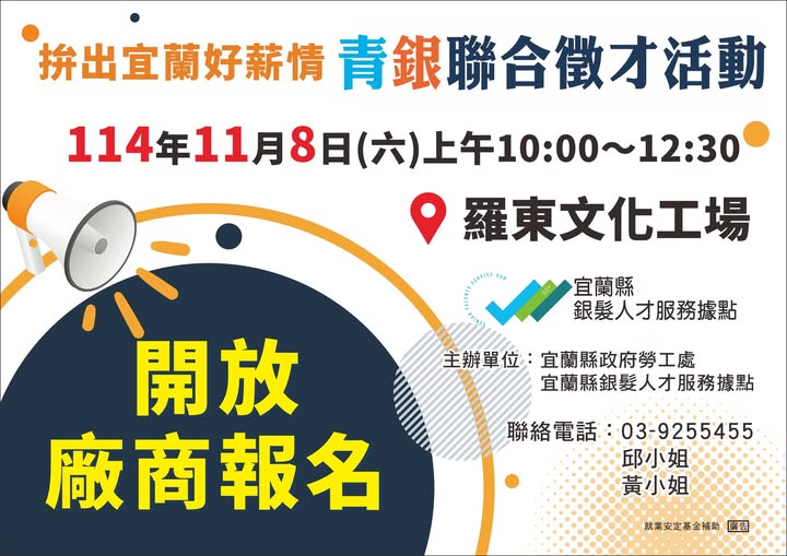 【徵才訊息】114年10月份,歡迎廠商免費刊登徵才訊息,就業媒合~