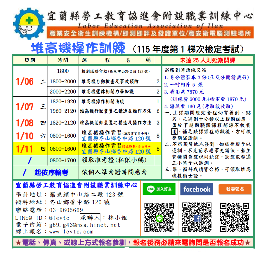 此訓練班報名方可報名參加115年度第1梯次即測即評技術士檢定