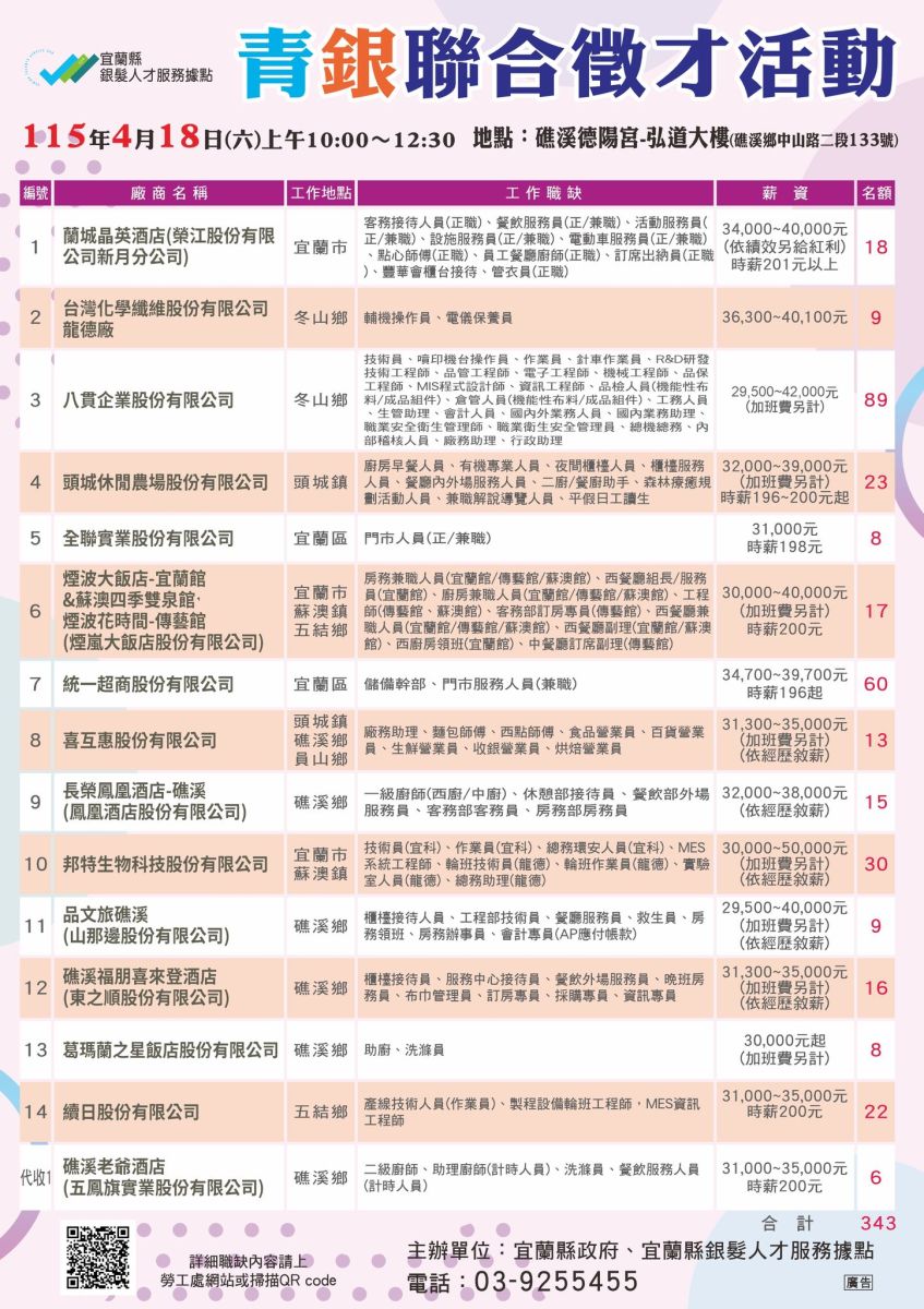 【就業媒合】115年4月份,歡迎廠商免費刊登徵才訊息,就業媒合~