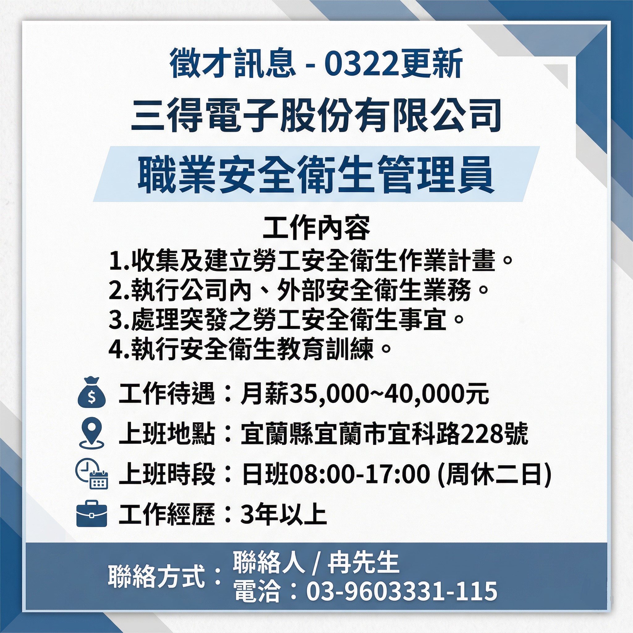【徵才媒合訊息】115年3月份,歡迎廠商免費刊登徵才訊息,就業媒合~