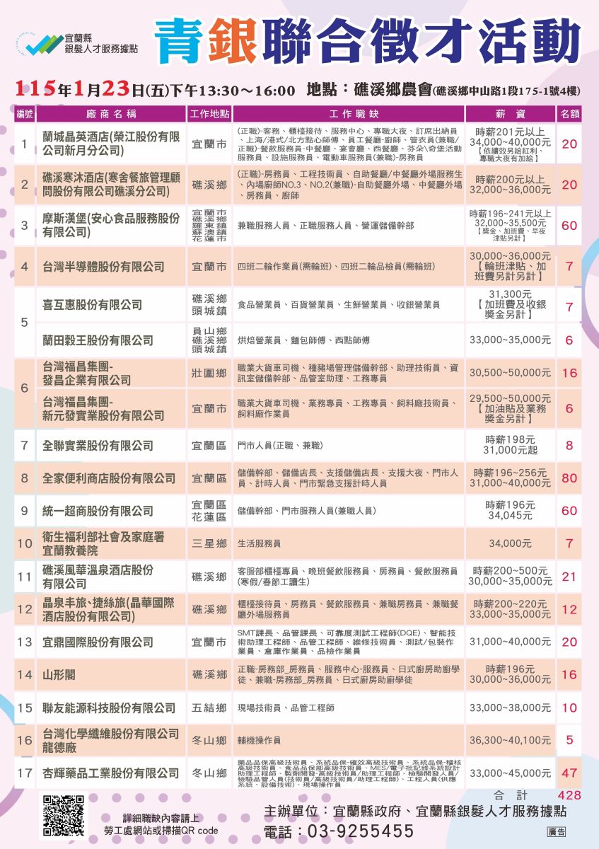 【徵才活動】溪北場-0123青銀聯合徵才活動職缺一覽表