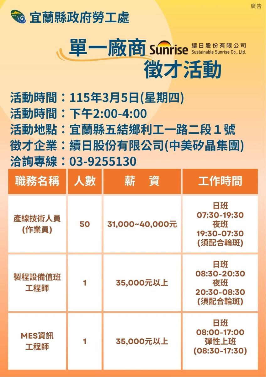【徵才訊息】115年3月份,歡迎廠商免費刊登徵才訊息,就業媒合~