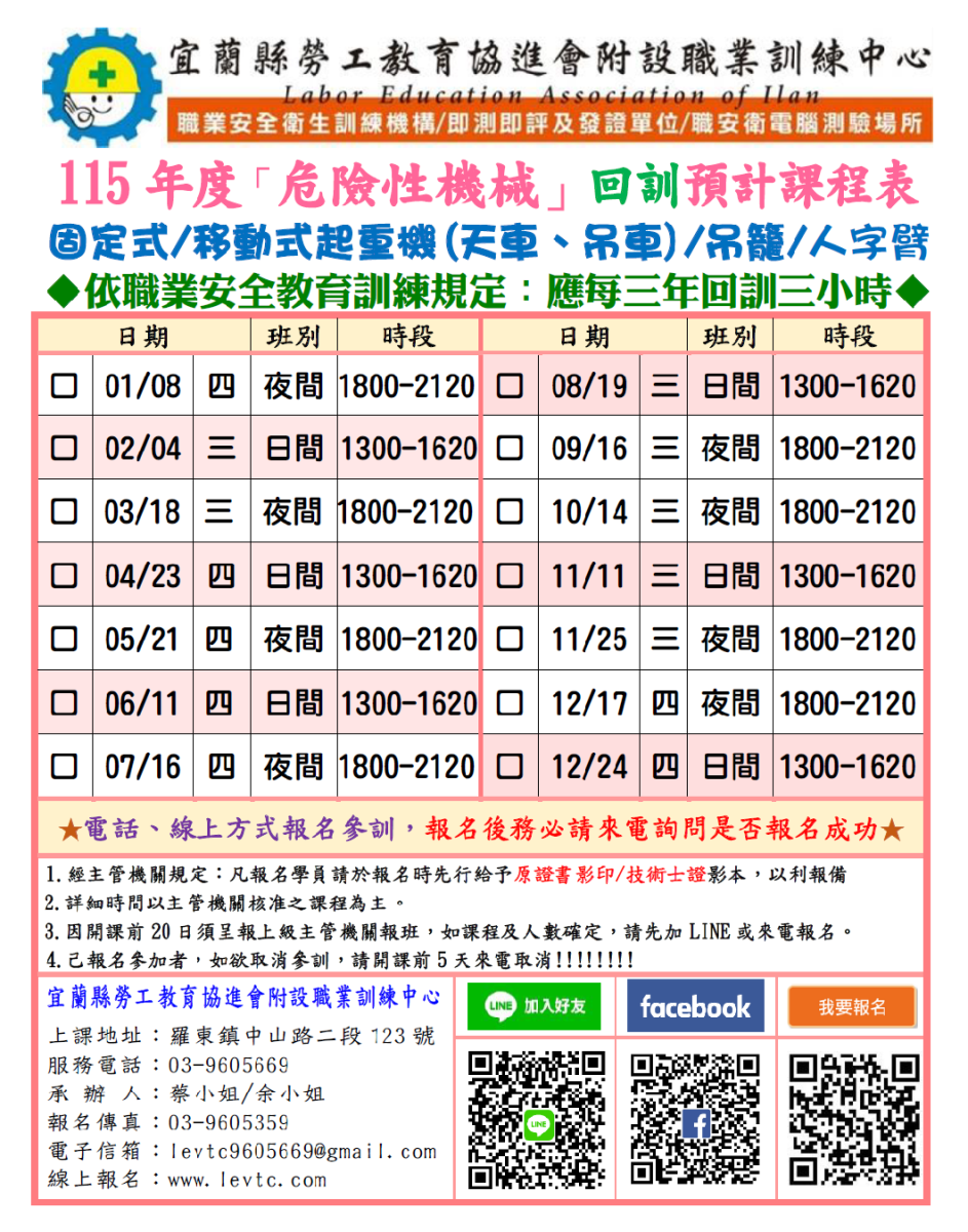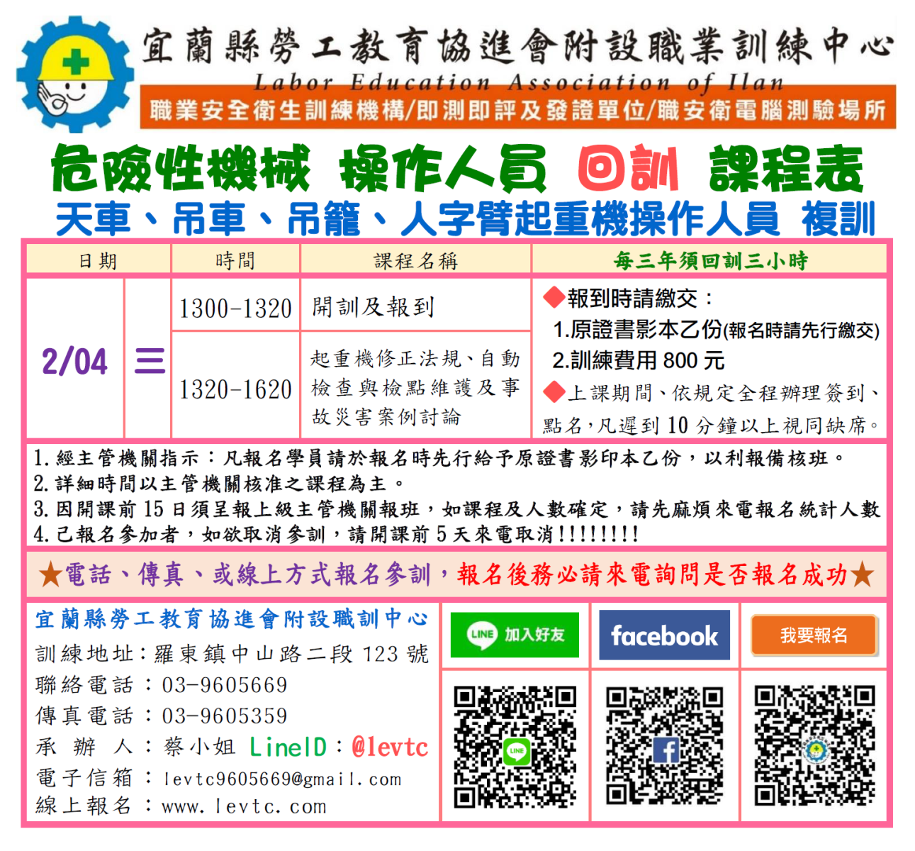 ★因職安署內部系統必須前三日上傳受訓人員資料,當日若無"報名序號"則無法上課。