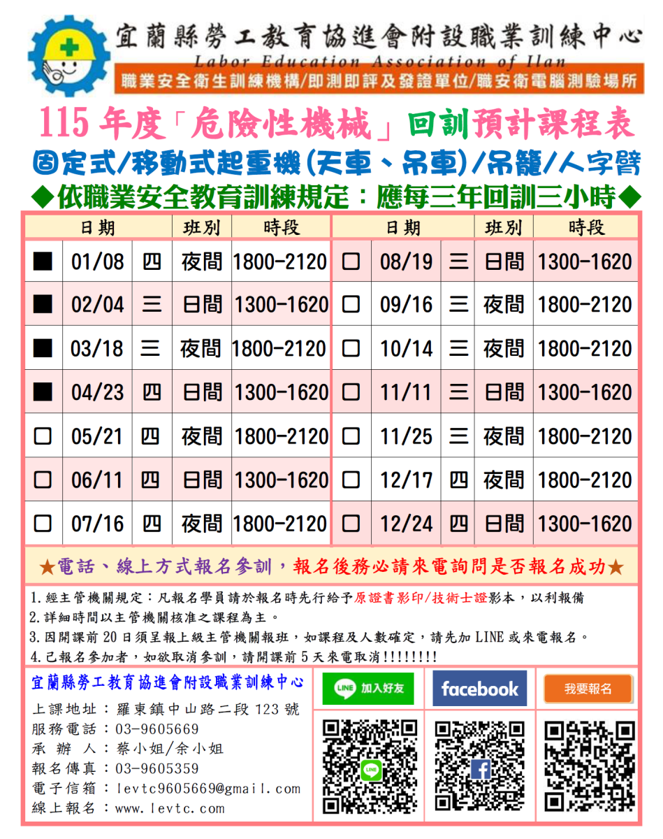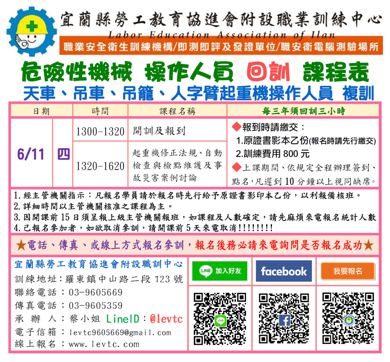 【吊車、天車、吊籠、人字臂】危險性機械回訓 - 05/21 夜間班(額滿為止)