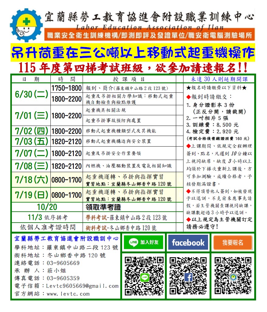 ◆起重及吊掛安全作業要領 4小時