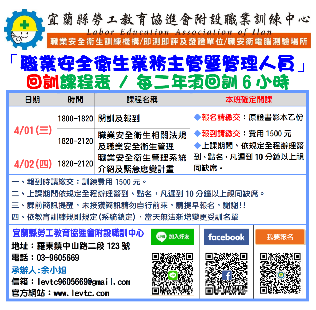 注意事項:★需先將「初訓-結業證書」拍照傳至本中心官方LINE https://lin.ee/2DRV0Bo。