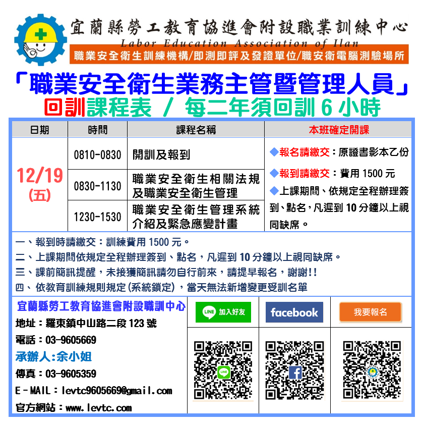 注意事項:★需先將「初訓-結業證書」拍照傳至本中心官方LINE https://lin.ee/2DRV0Bo。