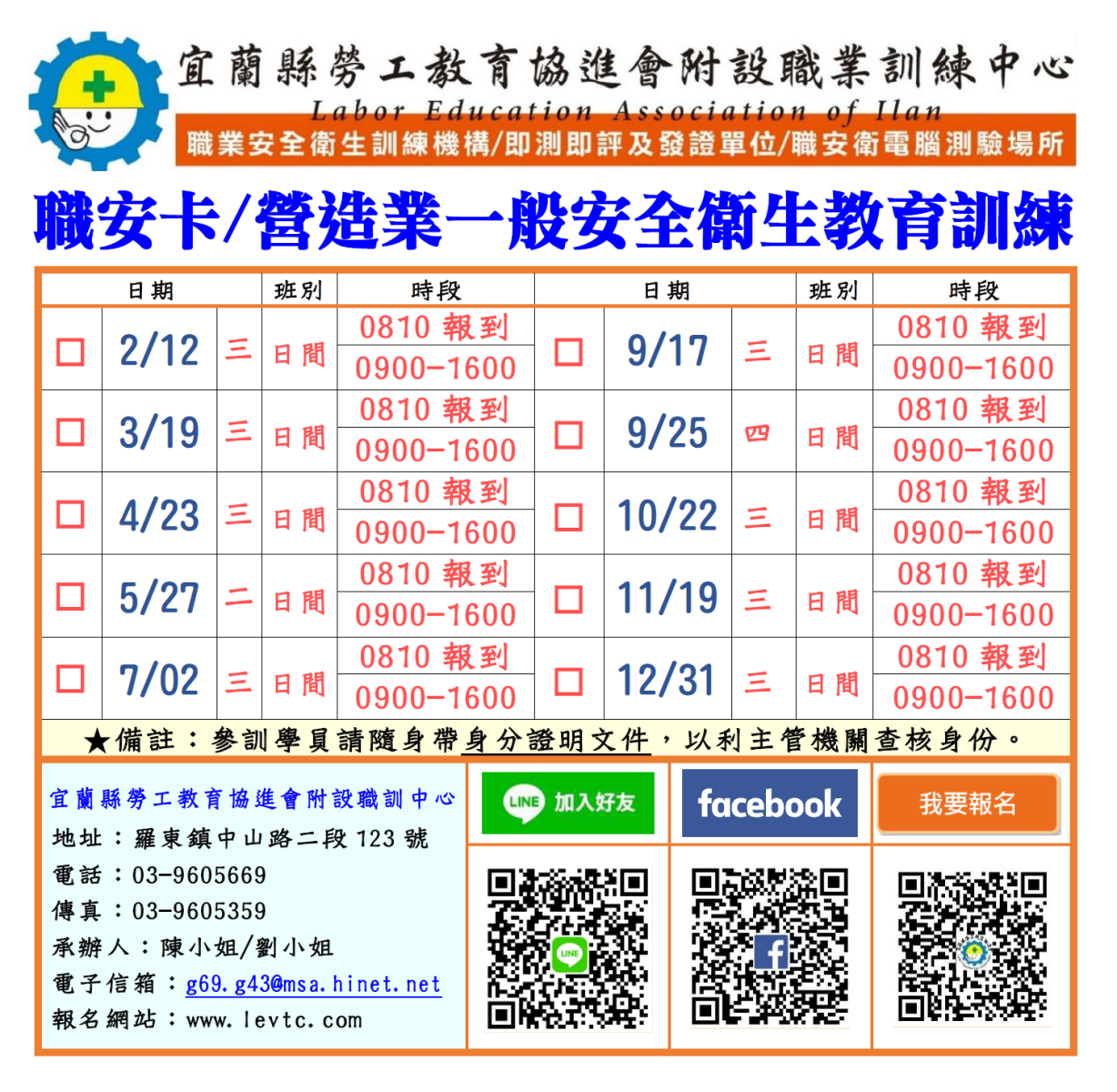 初訓-台灣職安卡移工專班~報名網址 https://forms.gle/7kVs2jQGXkkfPGsX9