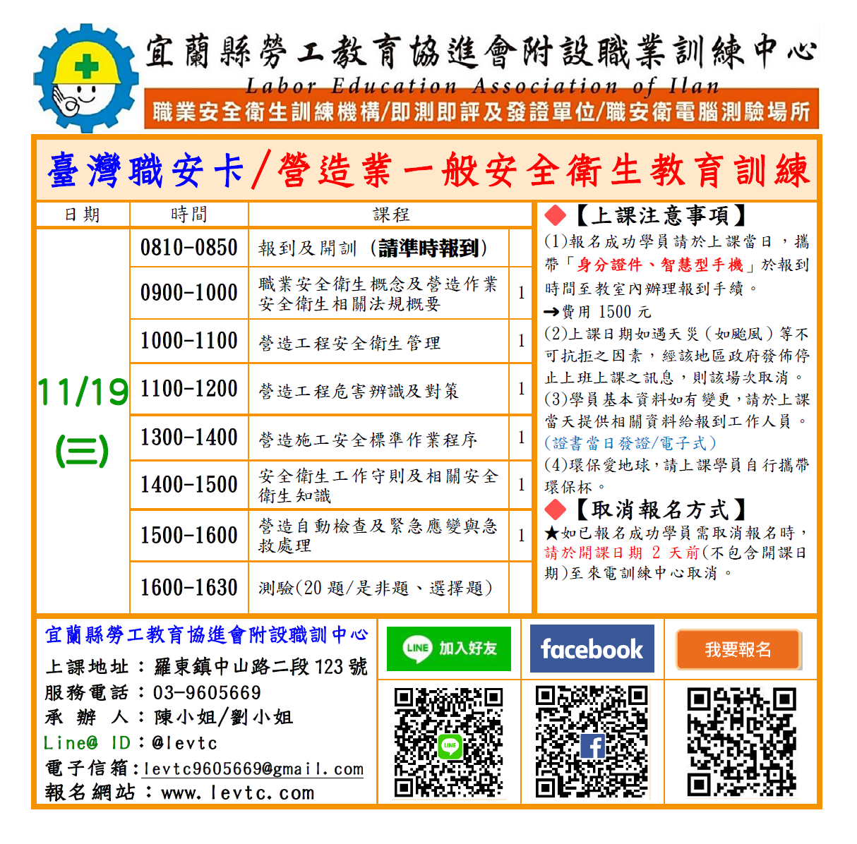 招生對象:營造作業之勞工或有意願參加者
