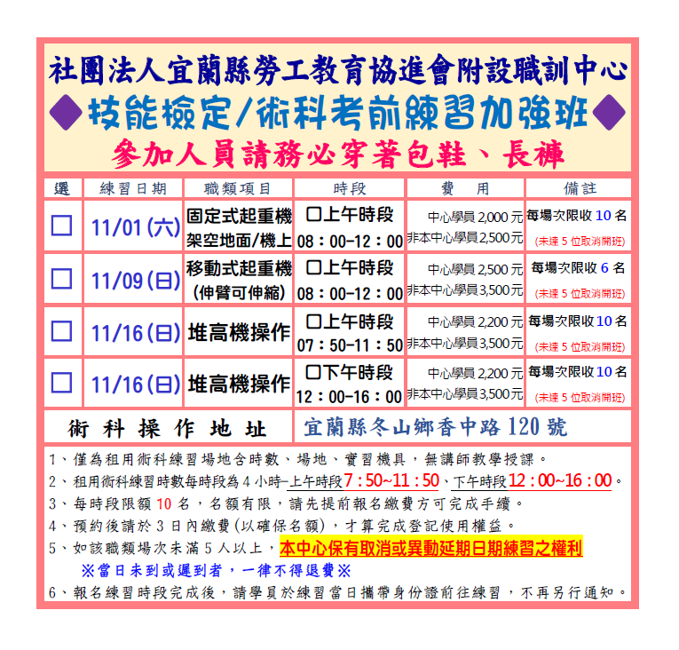 (現場報名)本中心開辦術科練習班,增加考前練習,以提供學員練習提高取考率