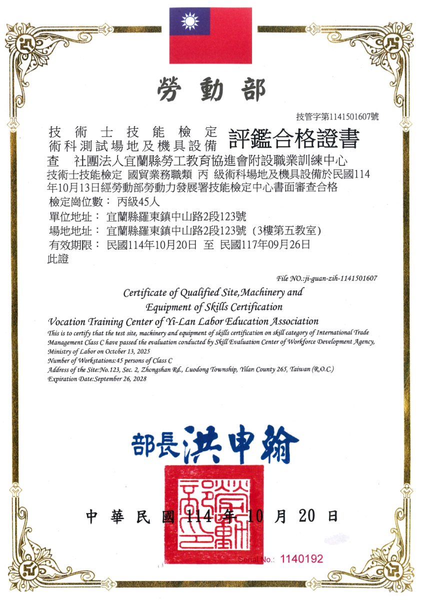本中心長期配合政府推動技能檢定政策,除提供專業培訓課程外,更積極建置完善的檢定試場,讓學員與在職勞工能就近報考、提升職能。此次增設的兩項職類,皆為勞動市場需求度高、具發展潛力的專業領域,對有志投入人力資源管理、國際貿易等相關產業者而言,都是重要的職涯加值機會。