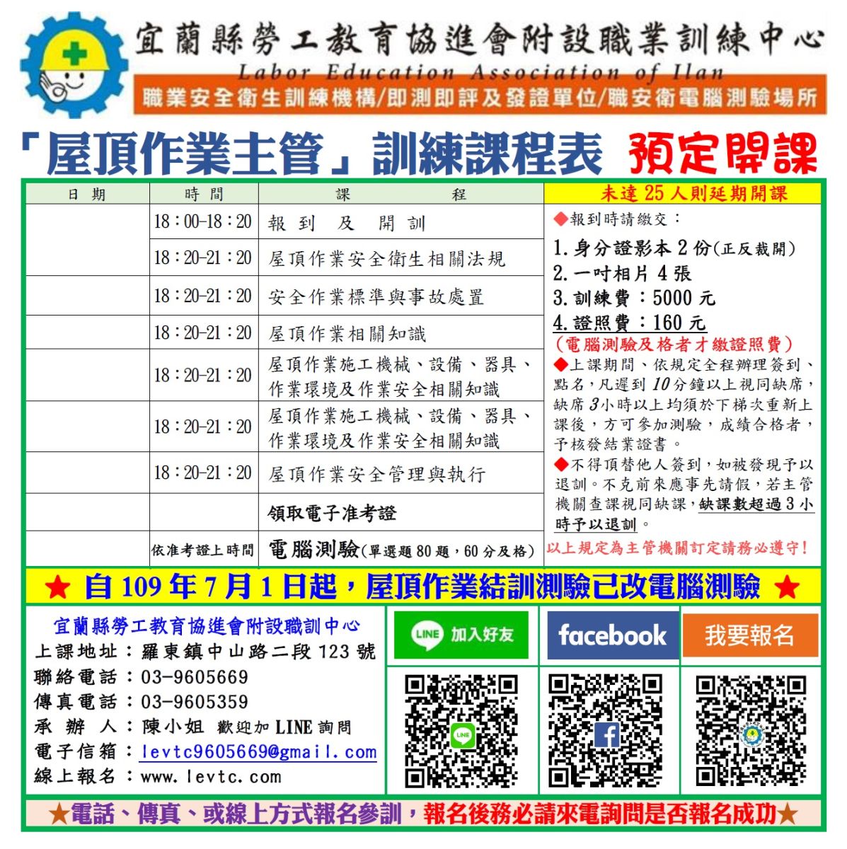 及職業安全衛生教育訓練規則第10條規定:『雇主對於擔任屋頂作業主管之勞工應於事前使其接受營造作業主管安全衛生教育訓練』