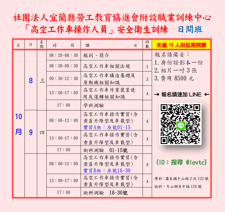 未滿18歲之人員,可否接受高空工作車操作人員特殊作業安全衛生教育訓練?