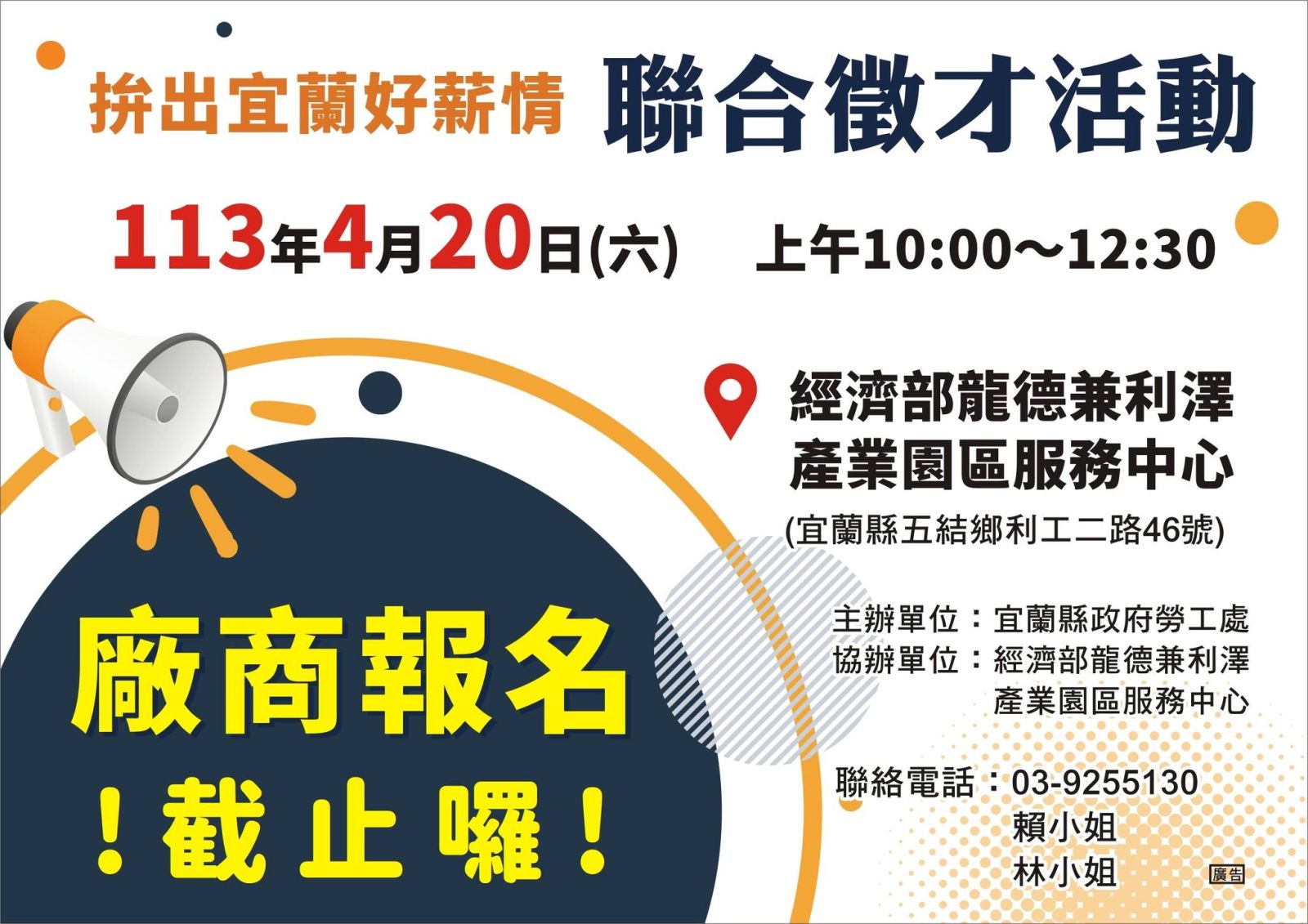 【徵才快訊】113年4月份,歡迎廠商免費刊登徵才訊息,就業媒合~