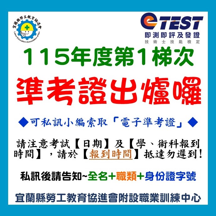 【考試公告】115年度第一梯次即測評準考證出來囉