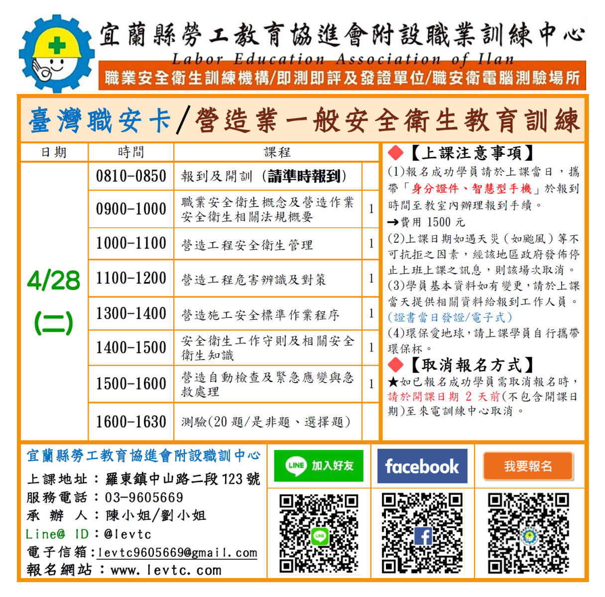 A:職安卡就是受過勞動局規劃營造作業一般安全衛生教育訓練6小時課程並測驗合格所頒發的教育訓練合格證明。