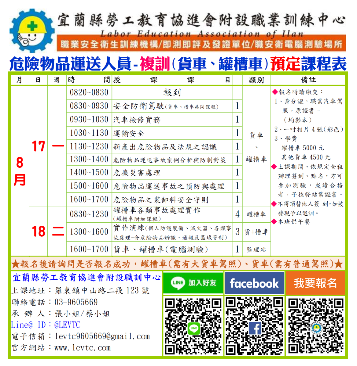 ※ 一、若學員上課中遲到、缺席經查課被退訓、結訓成績不及格(及格分數70分)或監理所發現駕照有肇事違規紀錄(如酒駕或事故)或已被吊銷、吊扣】皆不予核發結訓證明書。