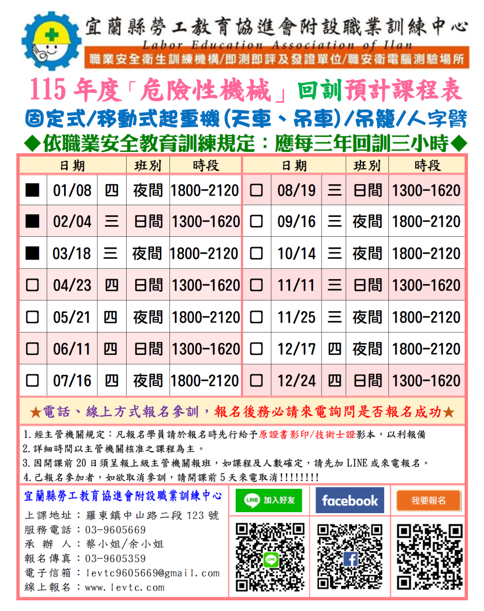 快進來下載【★☆近期開課表+相關公告☆★】唷!!! 欲報名者,請儘速報名~ 名額有限!! 額滿列下梯次!! 如有問題歡迎來電或加 LINE 諮詢,謝謝!!!