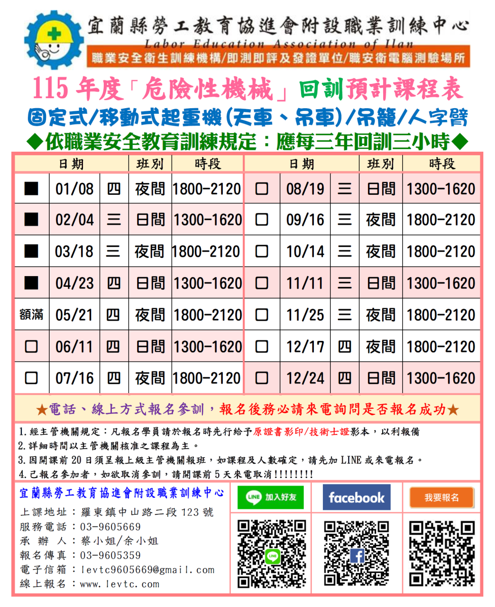 快進來下載【★☆近期開課表+相關公告☆★】唷!!! 欲報名者,請儘速報名~ 名額有限!! 額滿列下梯次!! 如有問題歡迎來電或加 LINE 諮詢,謝謝!!!