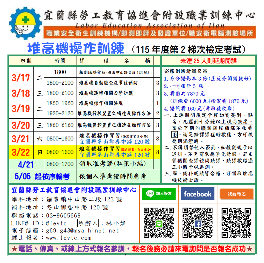 支票繳費: 抬頭為「社團法人宜蘭縣勞工教育協進會附設職業訓練中心」