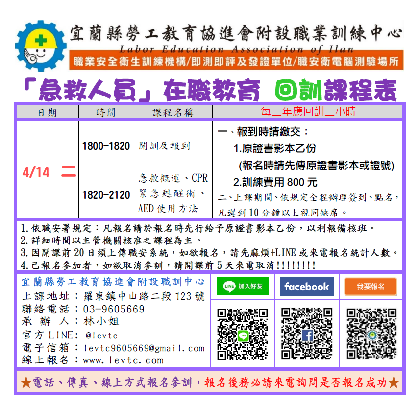 注意事項:★需先將「初訓證書」拍照傳至本中心官方LINE https://lin.ee/ePScPmd