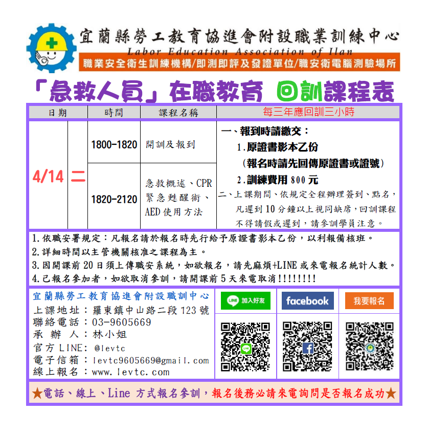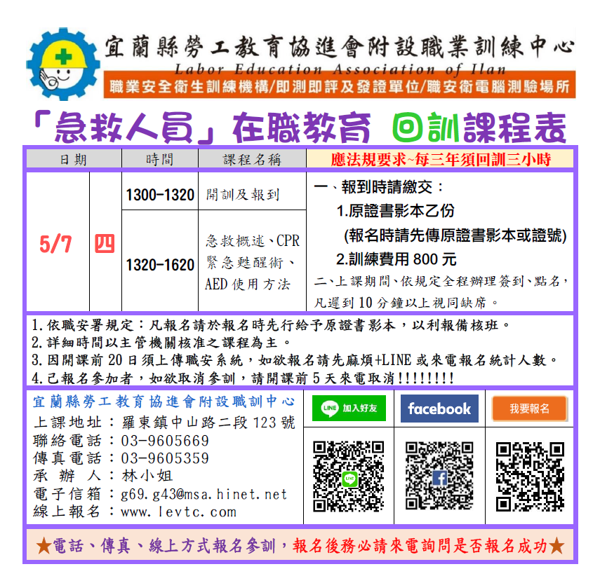 注意事項:★需先將「初訓證書」拍照傳至本中心官方LINE https://lin.ee/ePScPmd