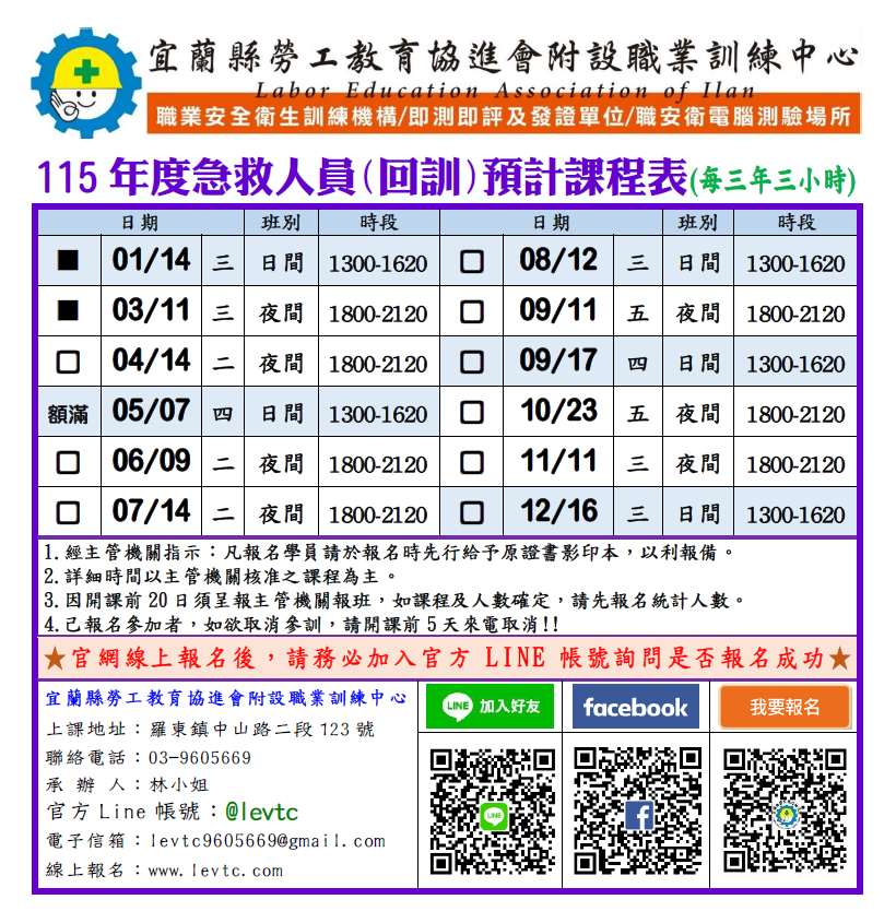 注意事項:需先將「初訓證書」拍照傳至本中心官方LINE https://lin.ee/ePScPmd