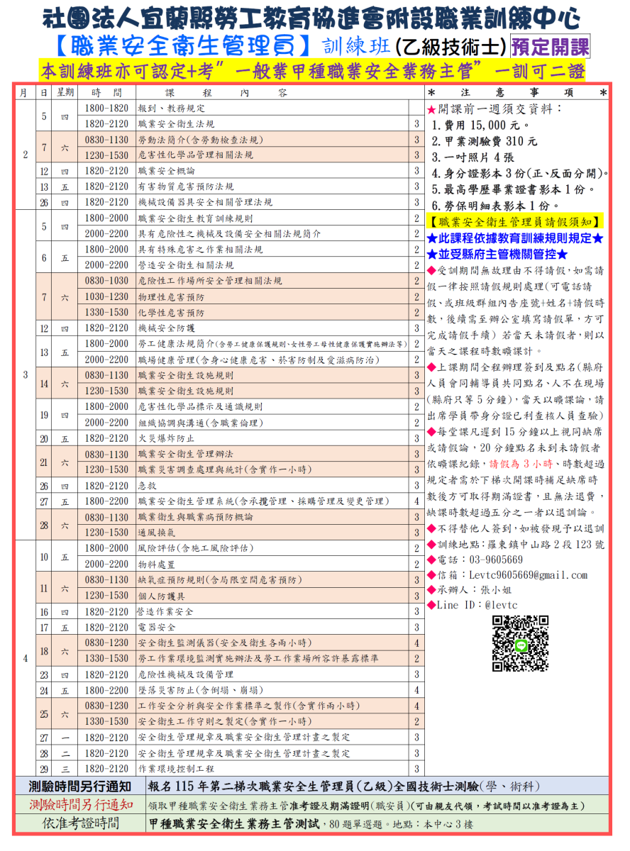 【職業安全衛生管理員】 預訂開課!! 招生中!! 名額有限,額滿為止。