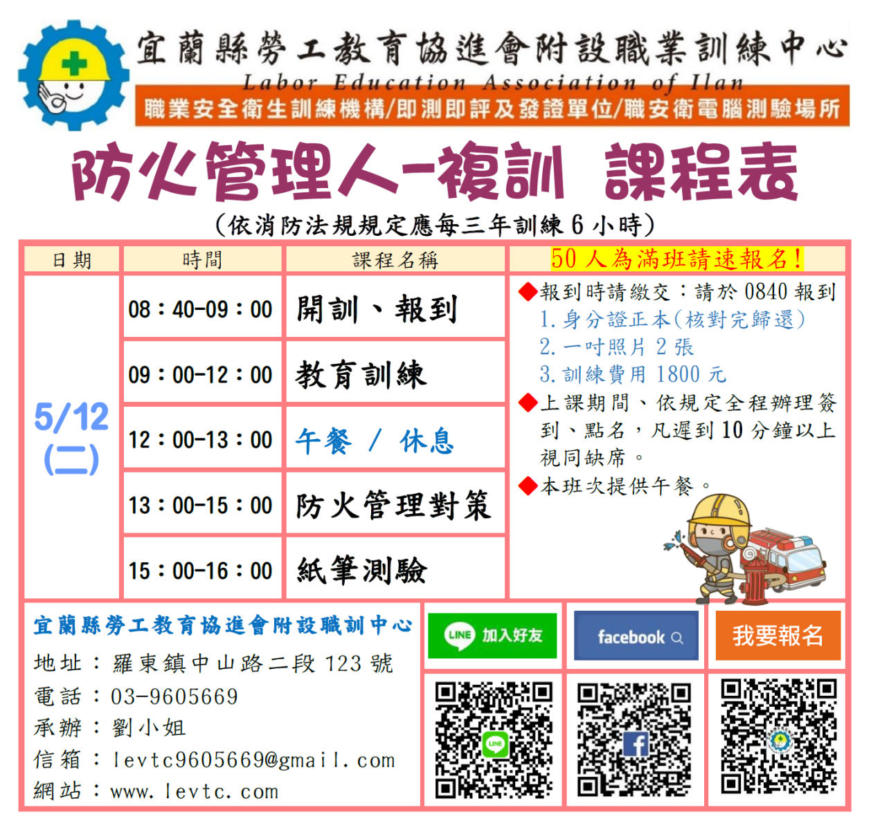 【防火管理人-複訓】5/12熱烈招生中~