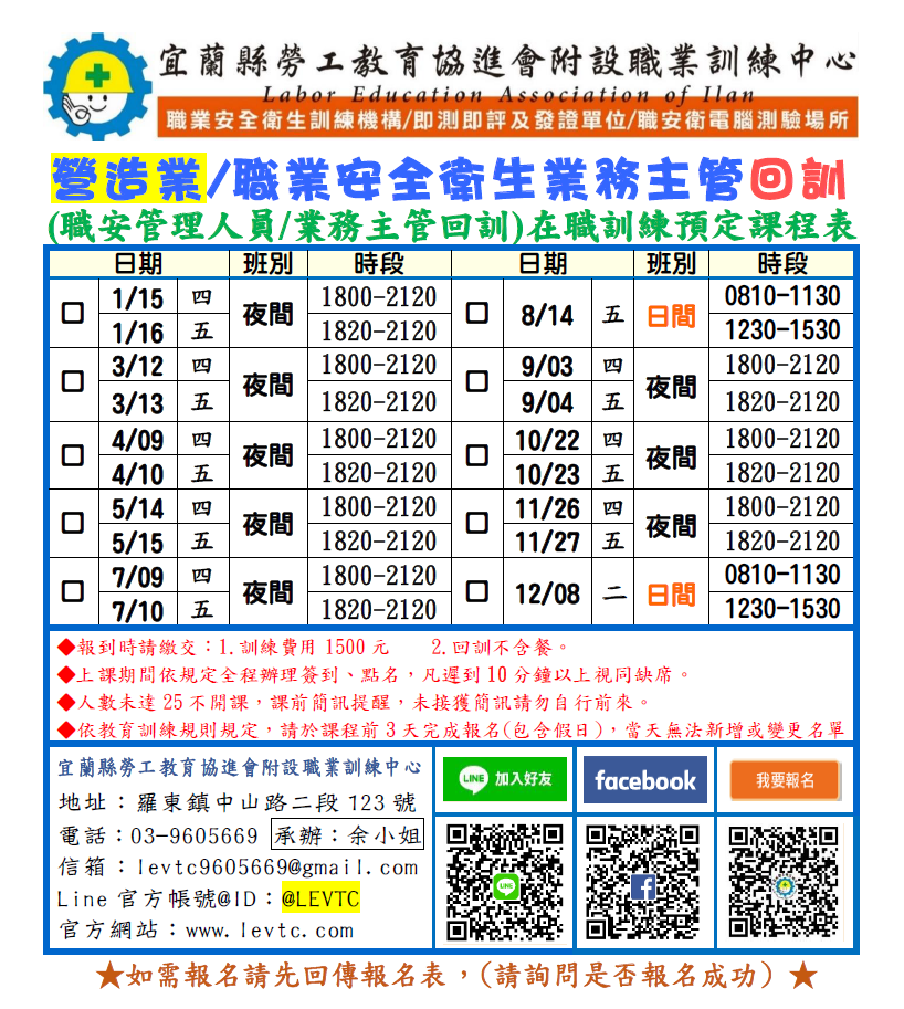 注意事項:★需先將「初訓-結業證書」拍照傳至本中心官方LINE https://lin.ee/2DRV0Bo。