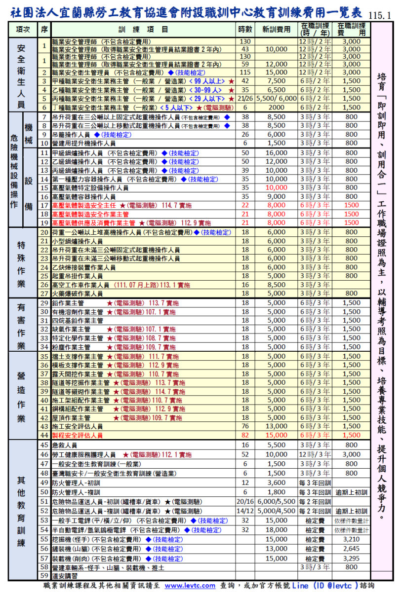 不論您是初入職場或需技能提升,本中心皆能為您提供最權威的培訓資源,歡迎蒞臨洽詢,與我們共同打造安全的工作環境。